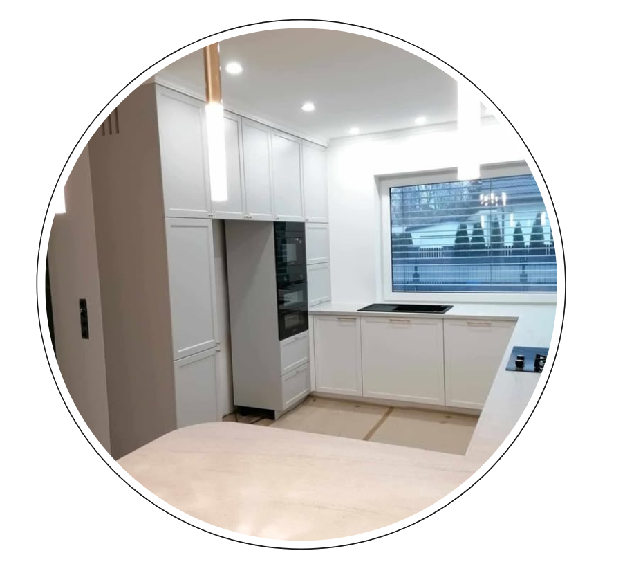 Tworzymy kuchnie od A do Z – od projektu aż po realizację: dokonujemy pomiaru pomieszczenia, przygotowujemy